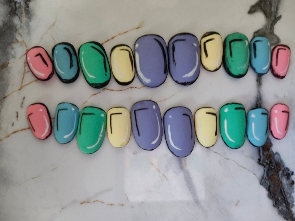 Custom made press on nails. 20 nail, short length Oval shaped set.