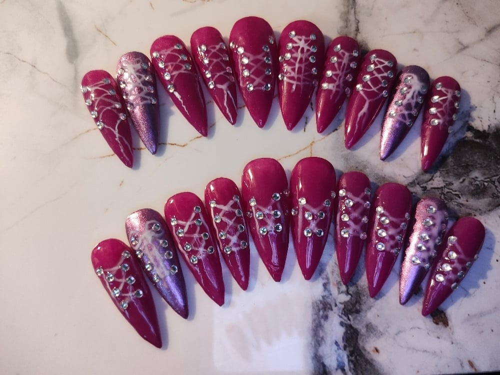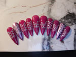 Custom made press on nails. 20 nail, long length Stiletto shaped set.