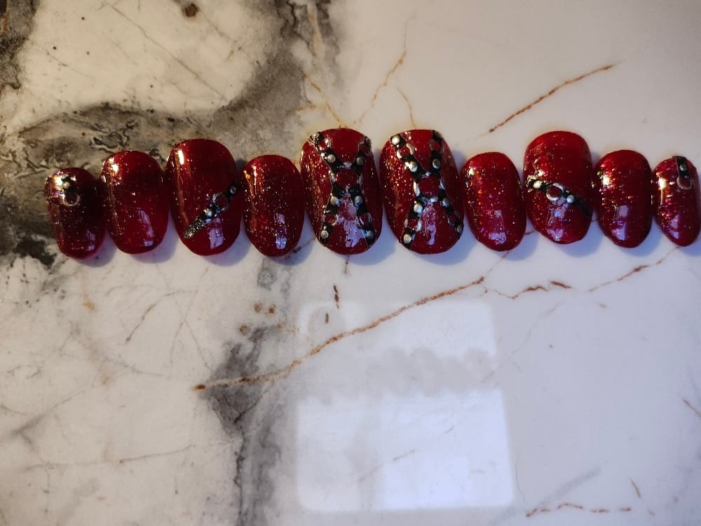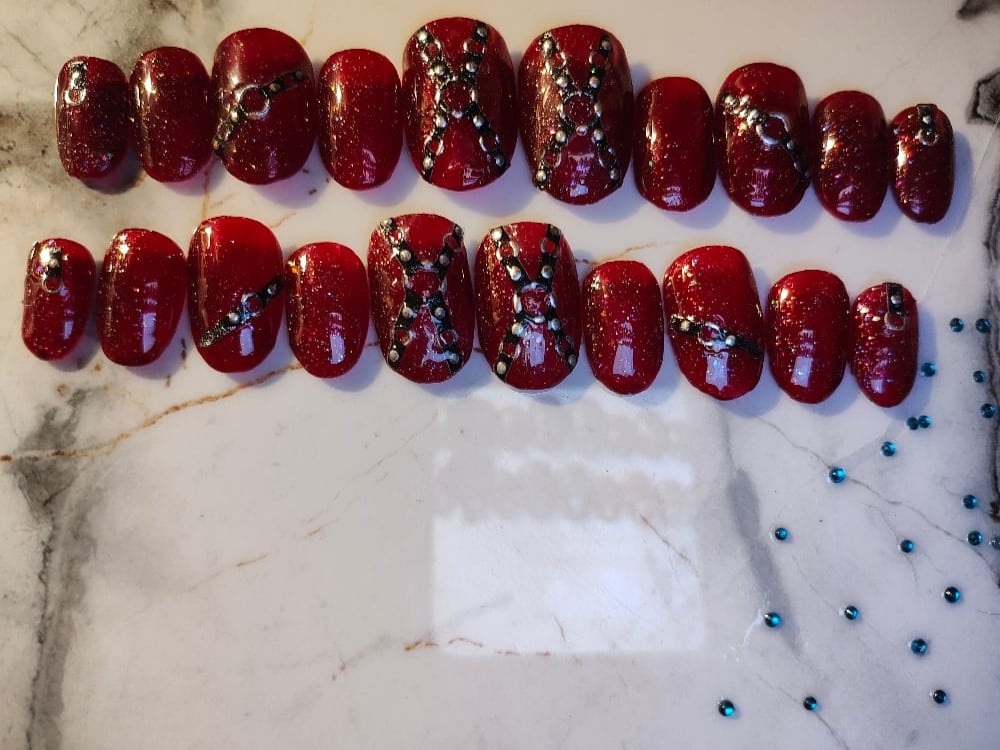 Custom made press on nails. 20 nail, short length Oval shaped set.